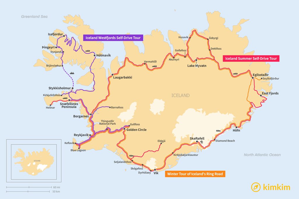 Map of 13 Days in Iceland – 3 Unique Itinerary Ideas