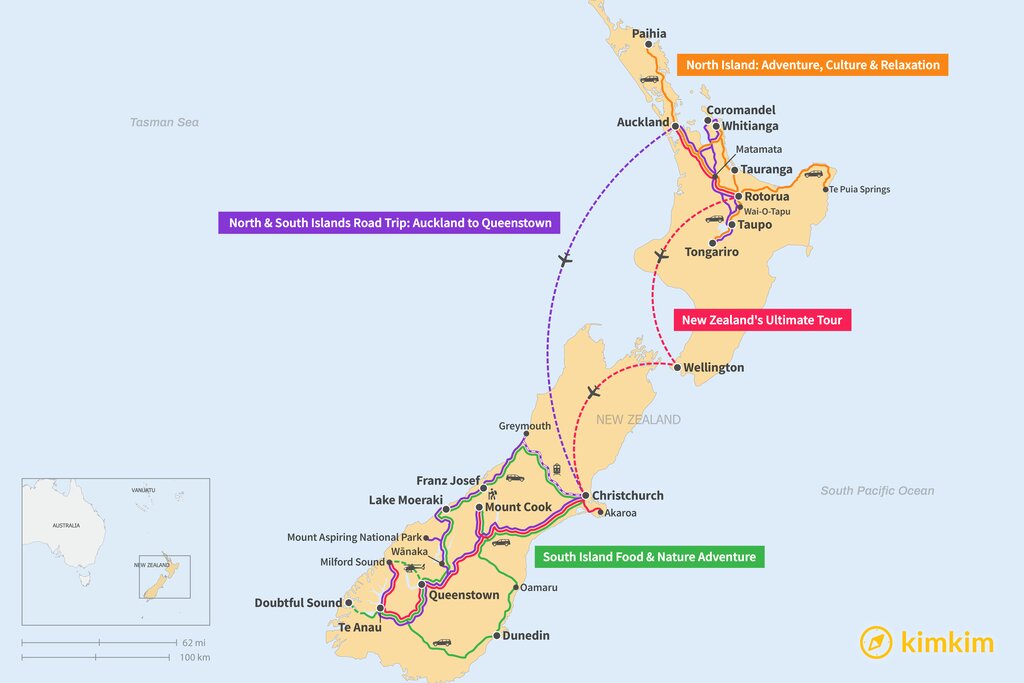 Map of 13 Days in New Zealand – 4 Unique Itinerary Ideas