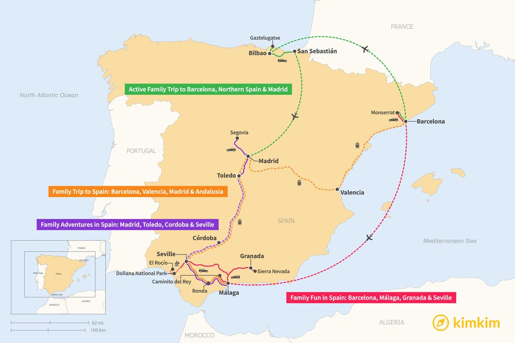 Map of 13 Days in Spain – 4 Family-Friendly Itinerary Ideas