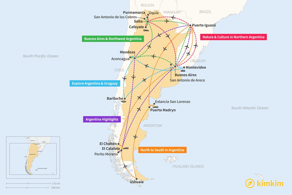 Map of 15 Days in Argentina – 5 Unique Itinerary Ideas