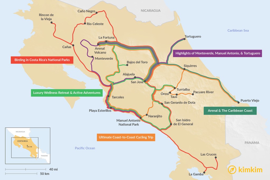 Map of 15 Days in Costa Rica – 5 Unique Itinerary Ideas