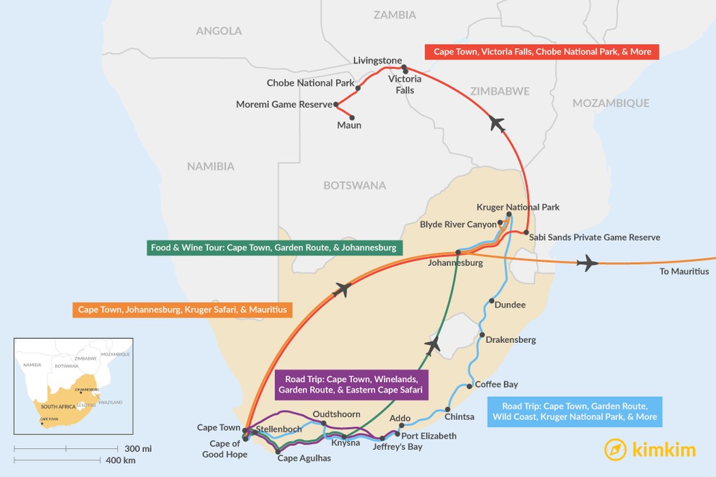 Map of 15 Days in South Africa – 5 Unique Itinerary Ideas