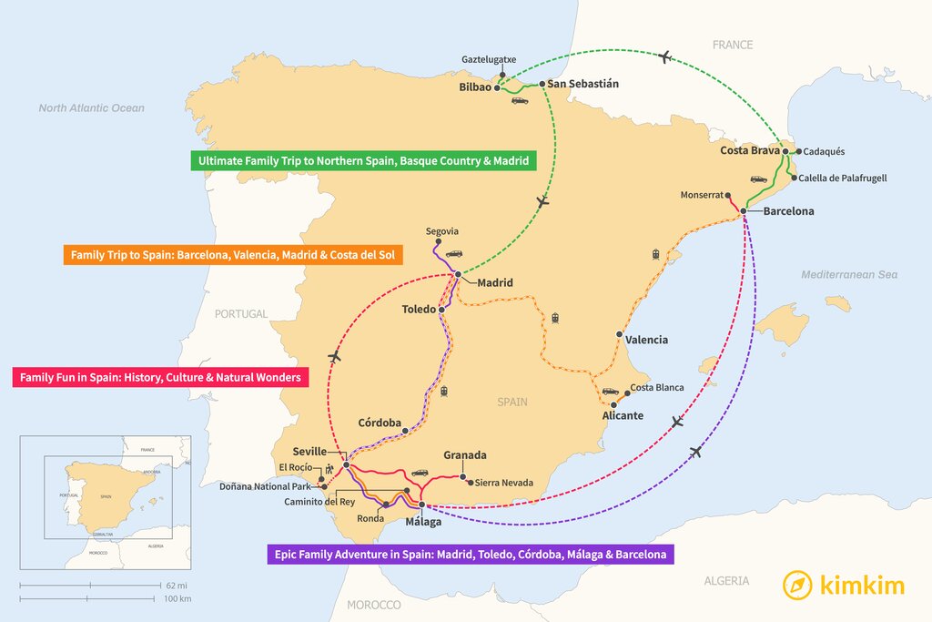 Map of 15 Days in Spain – 4 Family-Friendly Itinerary Ideas