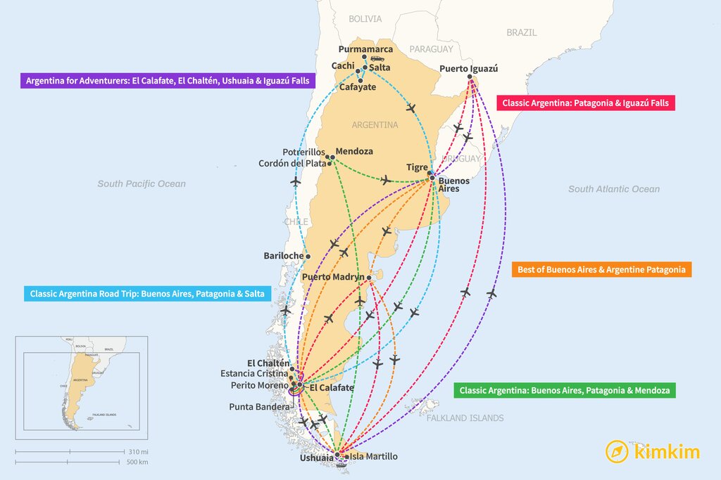 Map of 16 Days in Argentina – 5 Unique Itinerary Ideas