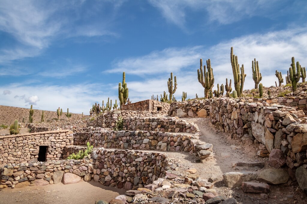 Fly to Salta and take the cable car up Cerro San Bernardo for panoramic views before starting your drive to Cafayate. En route, stop by Quebrada de las Conchas, a valley of red-colored canyons and unique rock formations, to stretch your legs and snap photos. Sample the region’s torrontés wine (and malbec-flavored gelato!) in Cafayete and get some rest before continuing to Cachi, where you can shop for artisanal items and visit the Museo Arqueológico de Cachi. Spend your final days enjoying scenic and historical spots such as Quebrada del Toro, the Salinas Grandes salt flats, and the Pucará de Tilcara fortress. Learn more