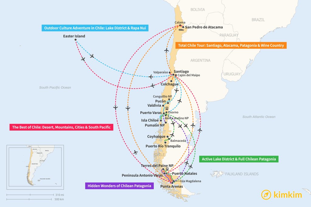 Map of 16 Days in Chile – 5 Unique Itinerary Ideas
