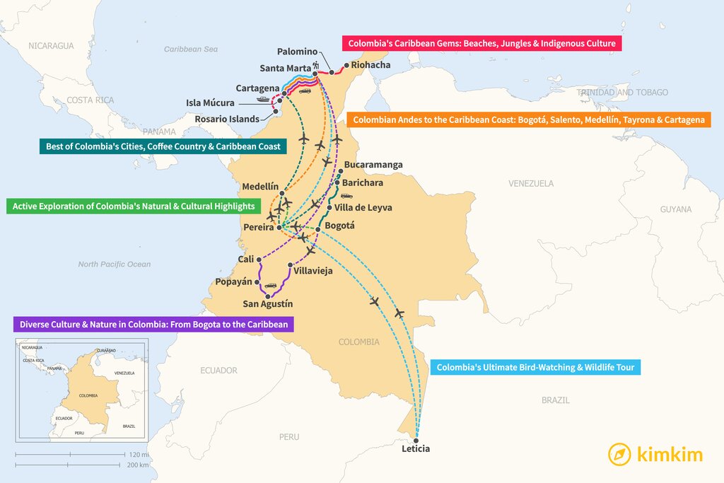Map of 16 Days in Colombia – 6 Unique Itinerary Ideas