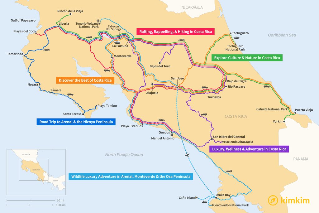 Map of 16 Days in Costa Rica – 6 Unique Itinerary Ideas