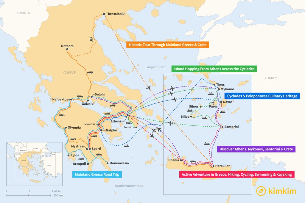 Map of 16 Days in Greece – 6 Unique Itinerary Ideas