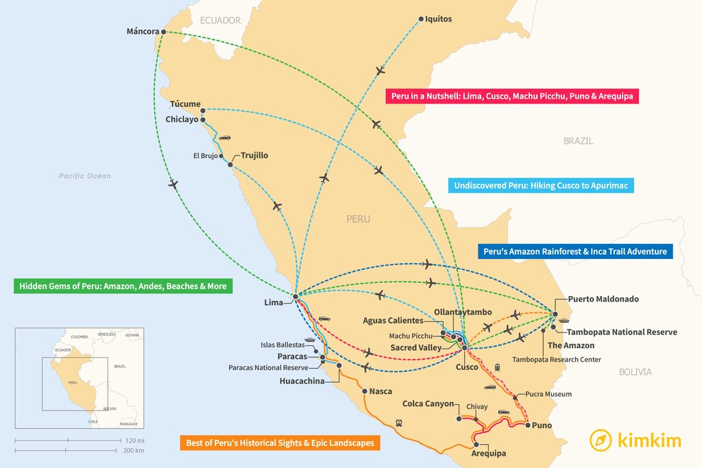Map of 16 Days in Peru – 5 Unique Itinerary Ideas