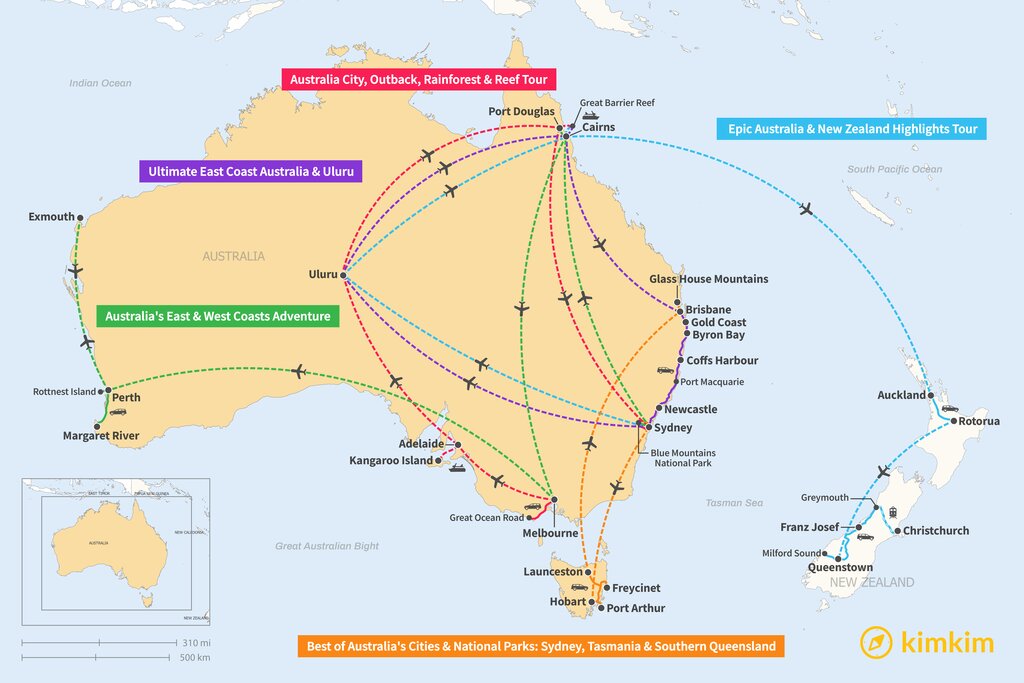 Map of 18 Days in Australia – 5 Unique Itinerary Ideas