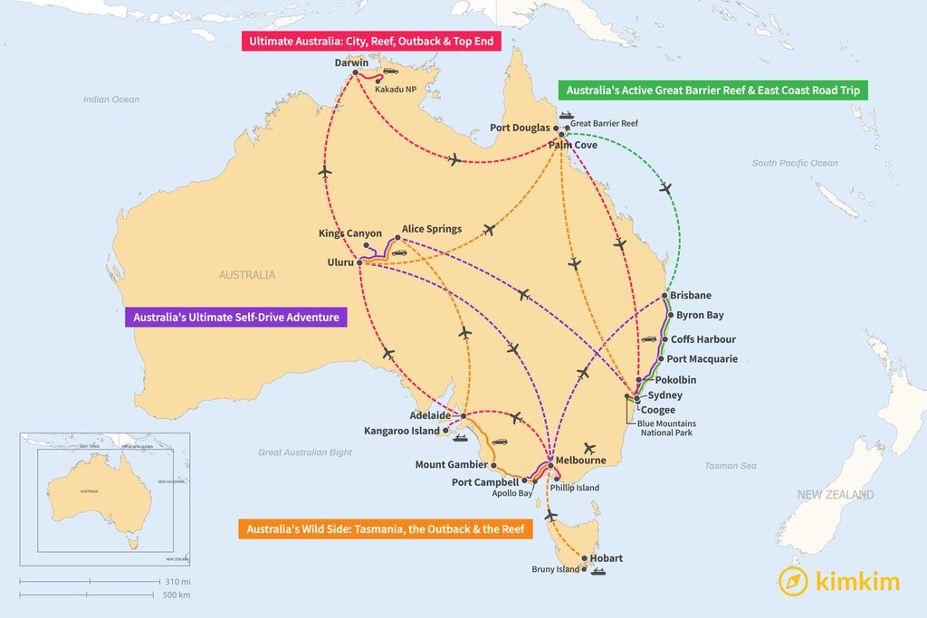 Map of 19 Days in Australia – 4 Unique Itinerary Ideas