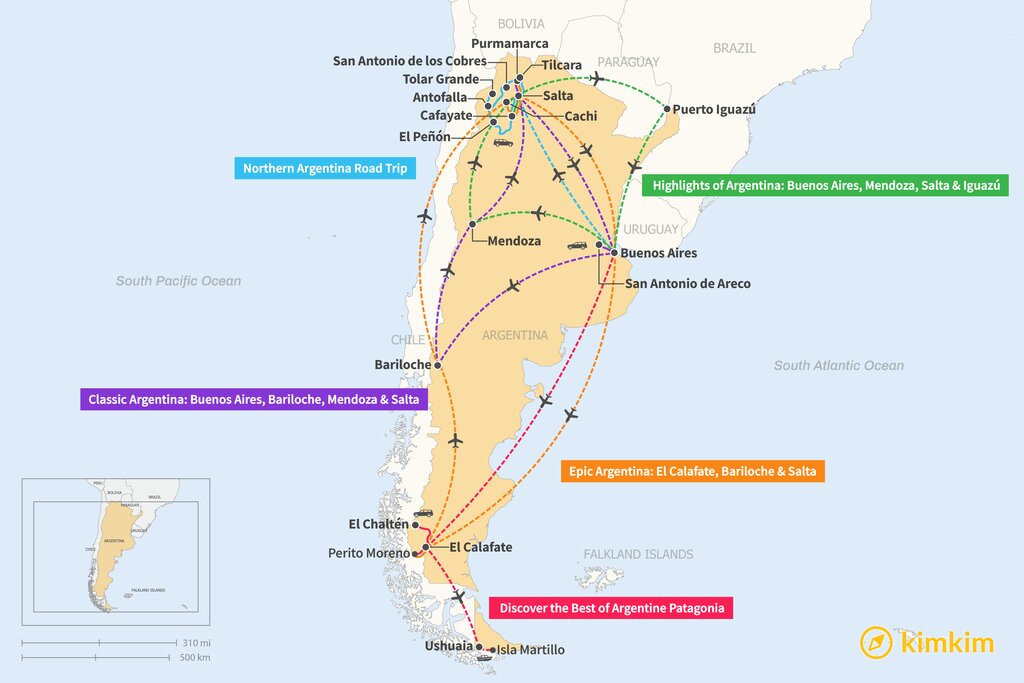 Map of 2 Weeks in Argentina – 5 Unique Itinerary Ideas