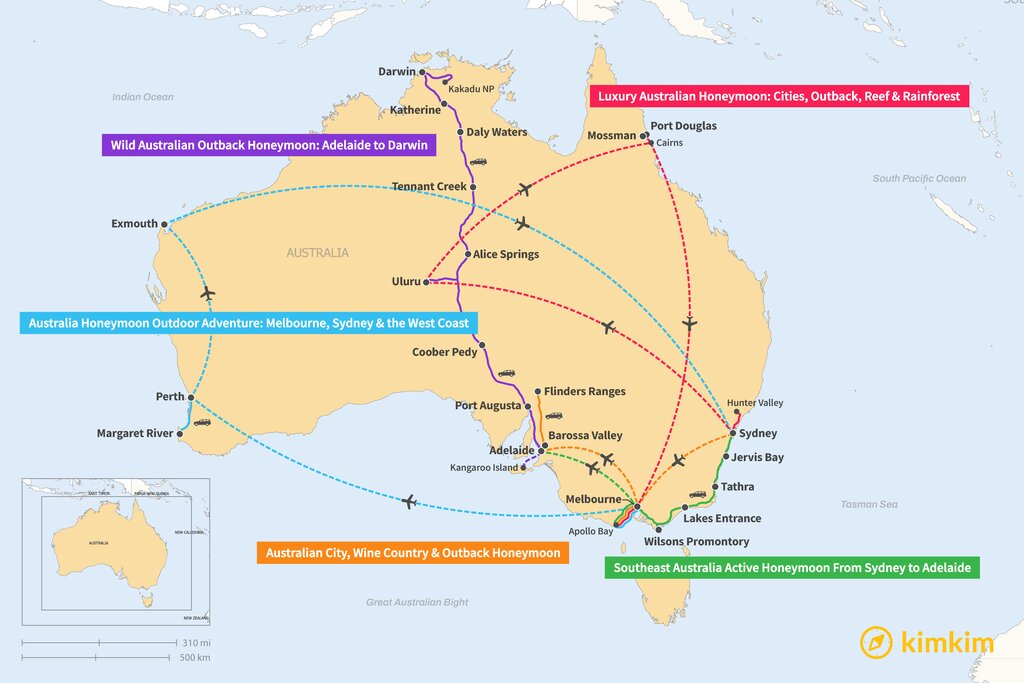 Map of 2 Weeks in Australia – 5 Honeymoon Itinerary Ideas