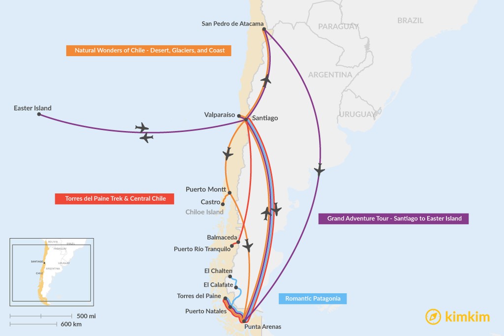Map of 2 Weeks in Chile – 4 Unique Itinerary Ideas