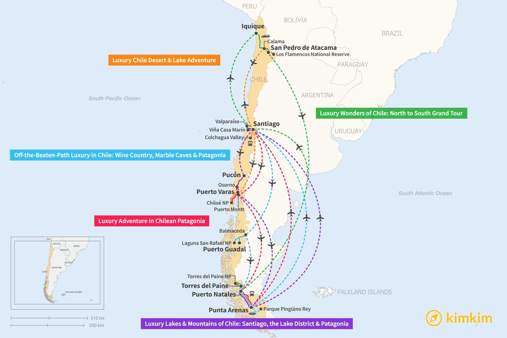 Map of 2 Weeks in Chile – 5 Luxury Itinerary Ideas
