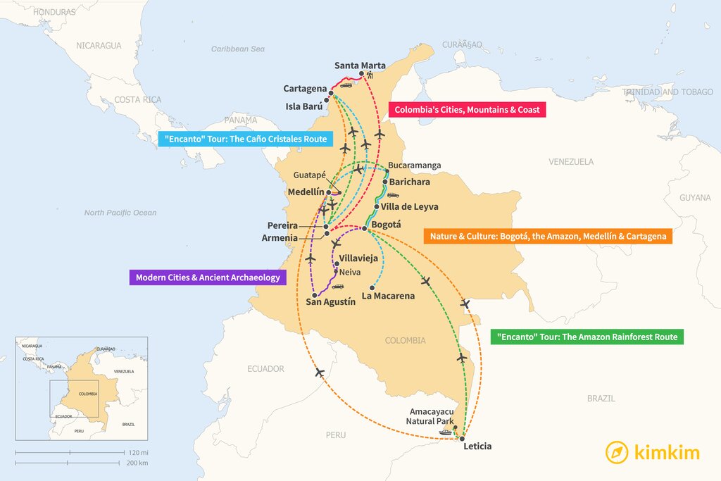 Map of 2 Weeks in Colombia – 5 Family-Friendly Itinerary Ideas