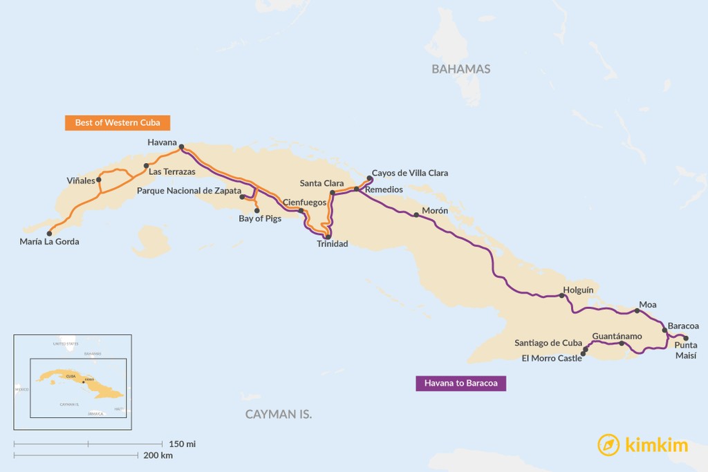 Map of 2 Weeks in Cuba – 2 Unique Itinerary Ideas