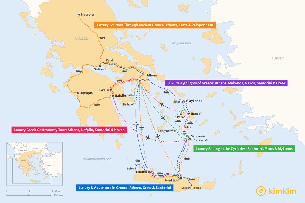 Map of 2 Weeks in Greece – 5 Luxury Itinerary Ideas