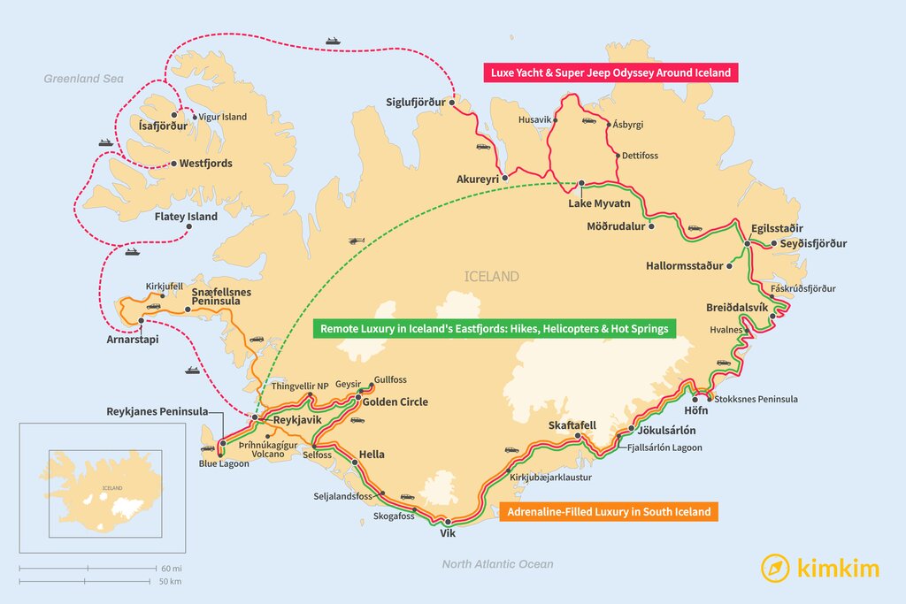Map of 2 Weeks in Iceland – 3 Luxury Itinerary Ideas