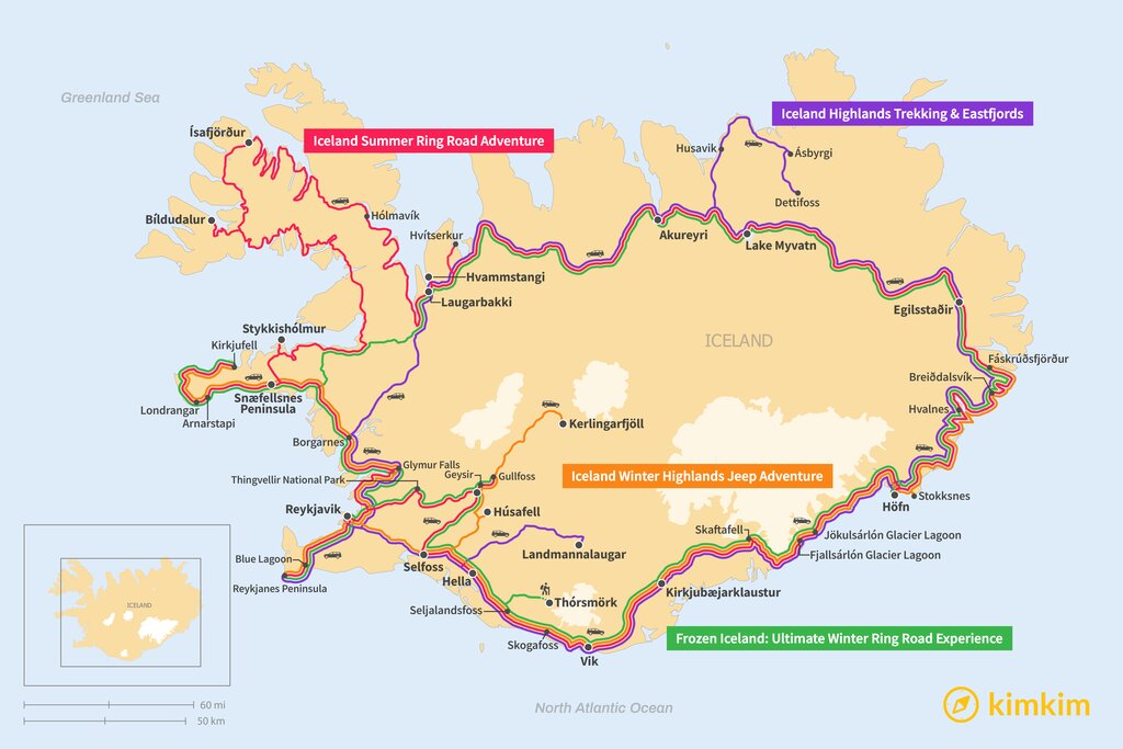 Map of 2 Weeks in Iceland – 4 Unique Itinerary Ideas