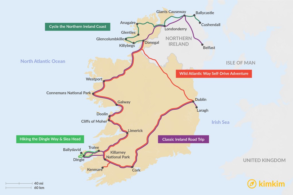 Map of 2 Weeks in Ireland – 4 Unique Itinerary Ideas