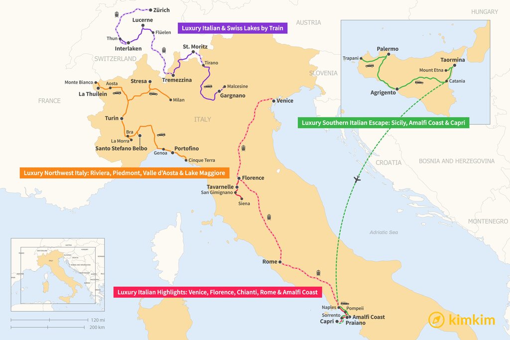 Map of 2 Weeks in Italy – 4 Luxury Itinerary Ideas