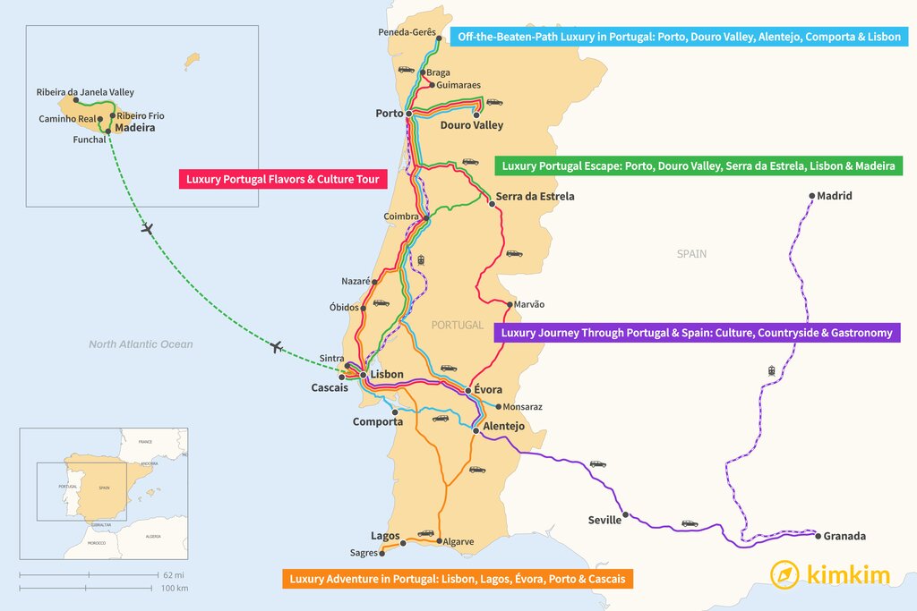 Map of 2 Weeks in Portugal – 5 Luxury Itinerary Ideas