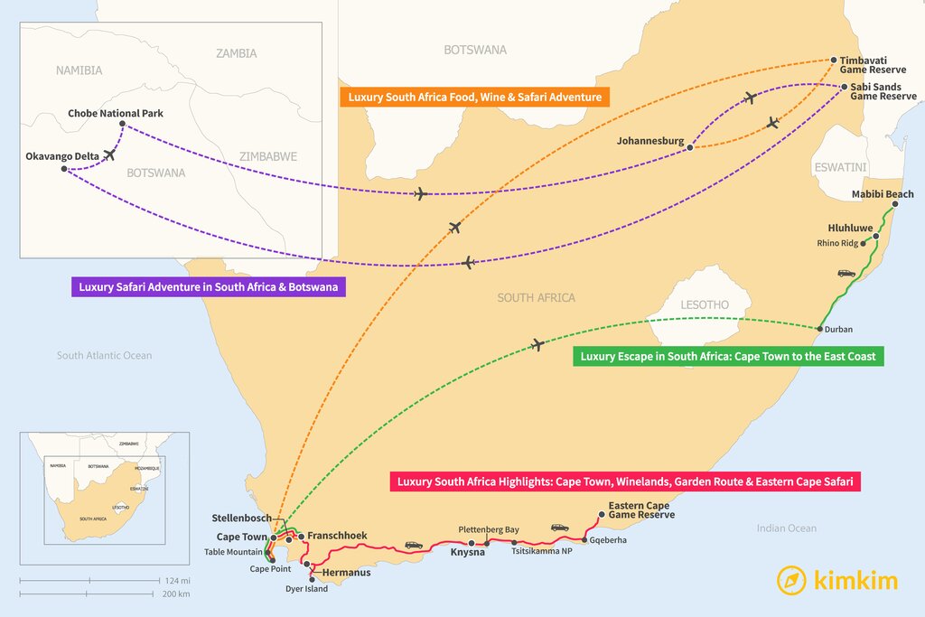 Map of 2 Weeks in South Africa – 4 Luxury Itinerary Ideas