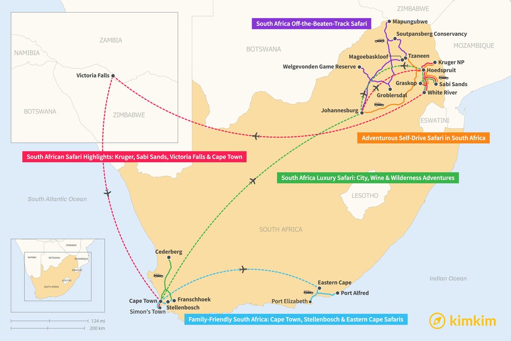 Map of 2 Weeks in South Africa – 5 Safari Itinerary Ideas