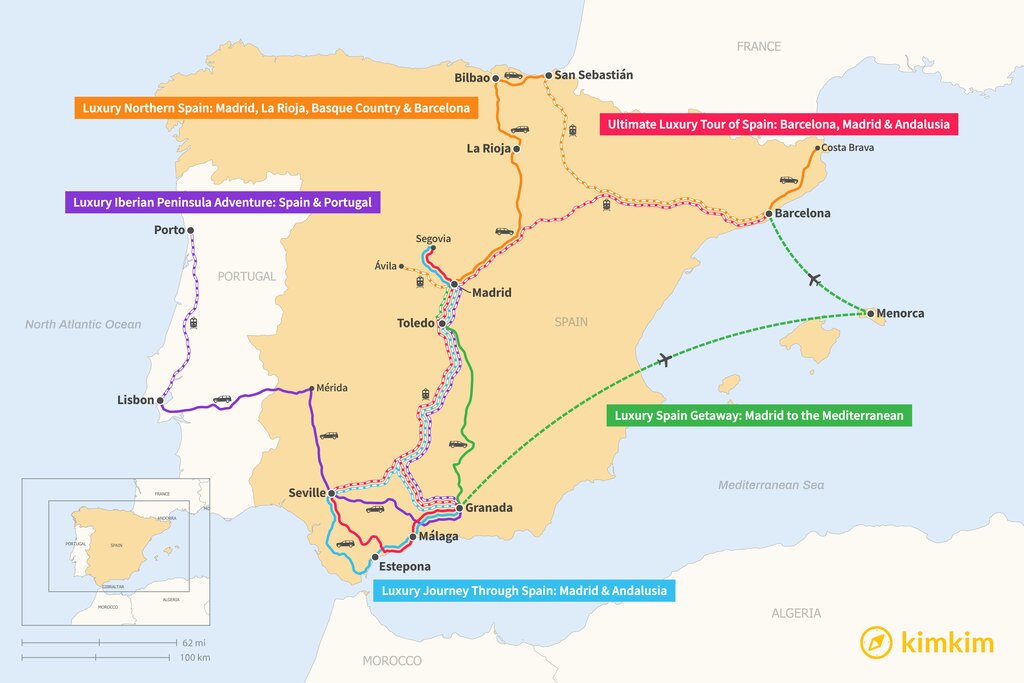 Map of 2 Weeks in Spain – 5 Luxury Itinerary Ideas
