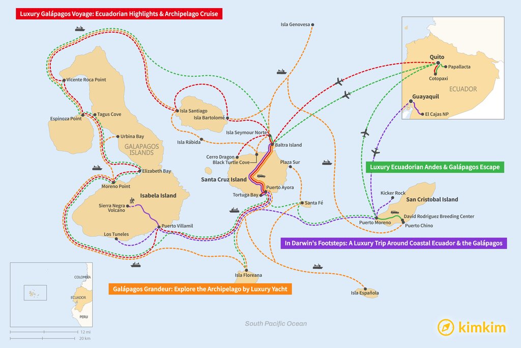 Map of 2 Weeks in the Galápagos Islands – 4 Luxury Itinerary Ideas