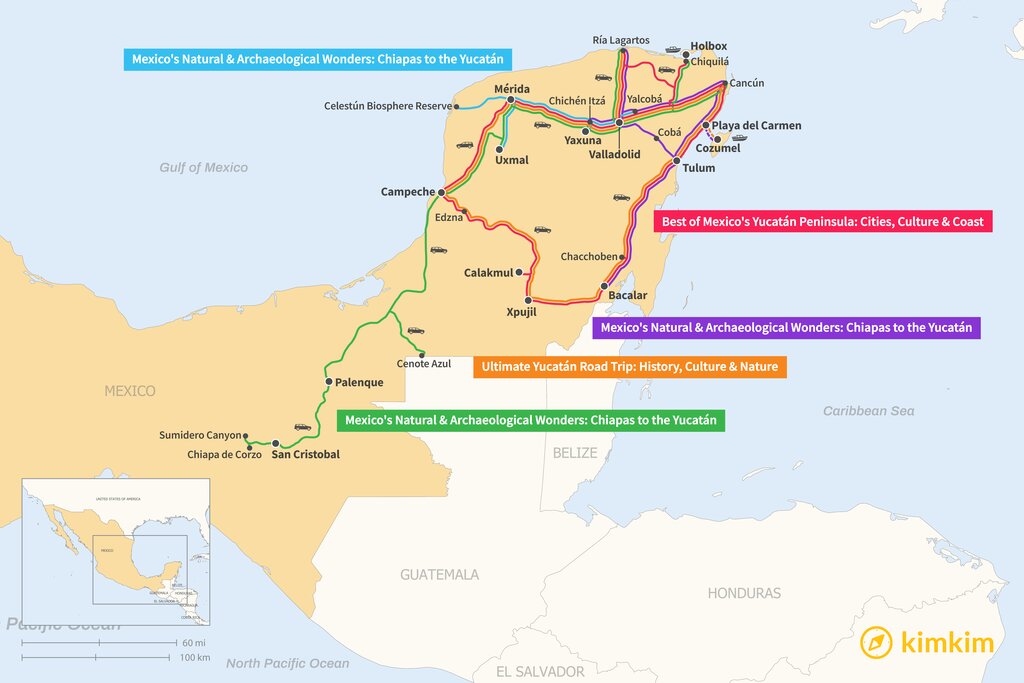 Map of 2 Weeks in the Yucatán – 5 Unique Itinerary Ideas