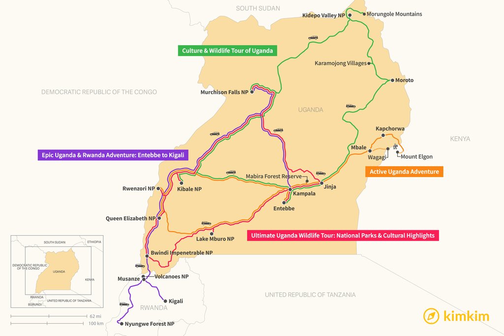 Map of 2 Weeks in Uganda – 4 Unique Itinerary Ideas