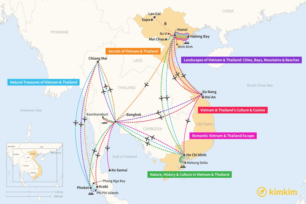 Map of 2 Weeks in Vietnam & Thailand – 6 Unique Itinerary Ideas