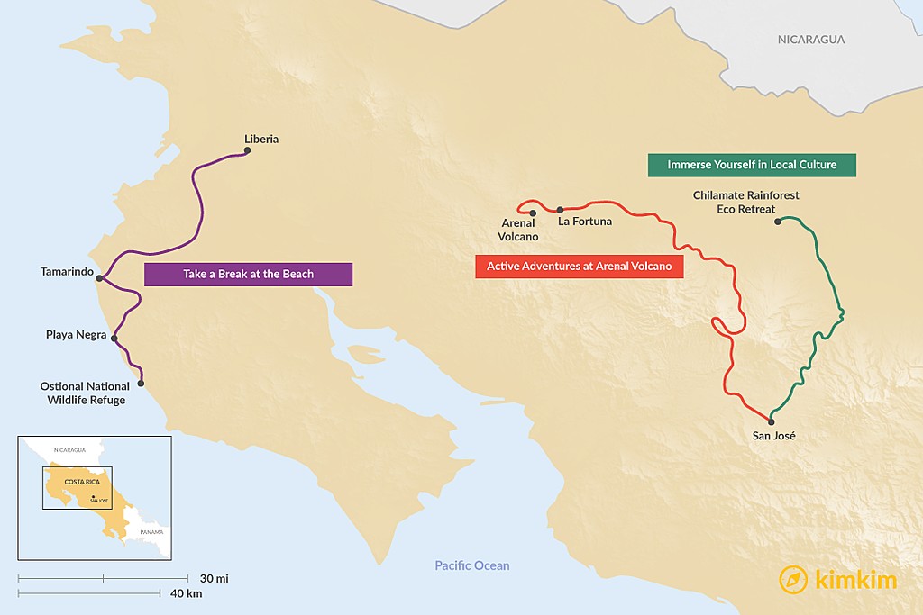 Map of 3 Days in Costa Rica – 3 Unique Itinerary Ideas