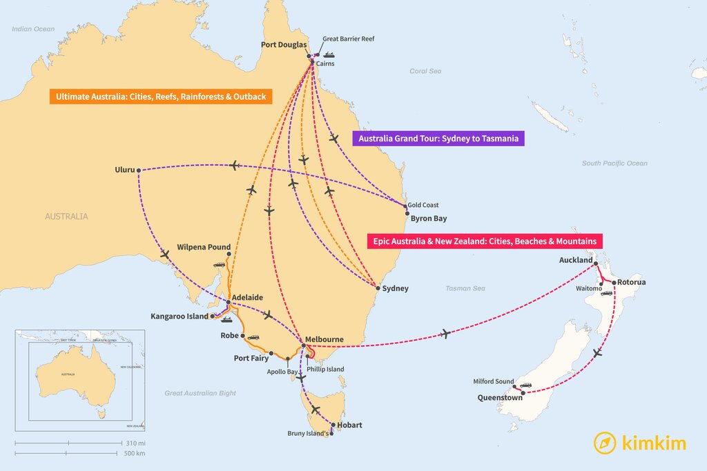 Map of 3 Weeks in Australia – 3 Unique Itinerary Ideas