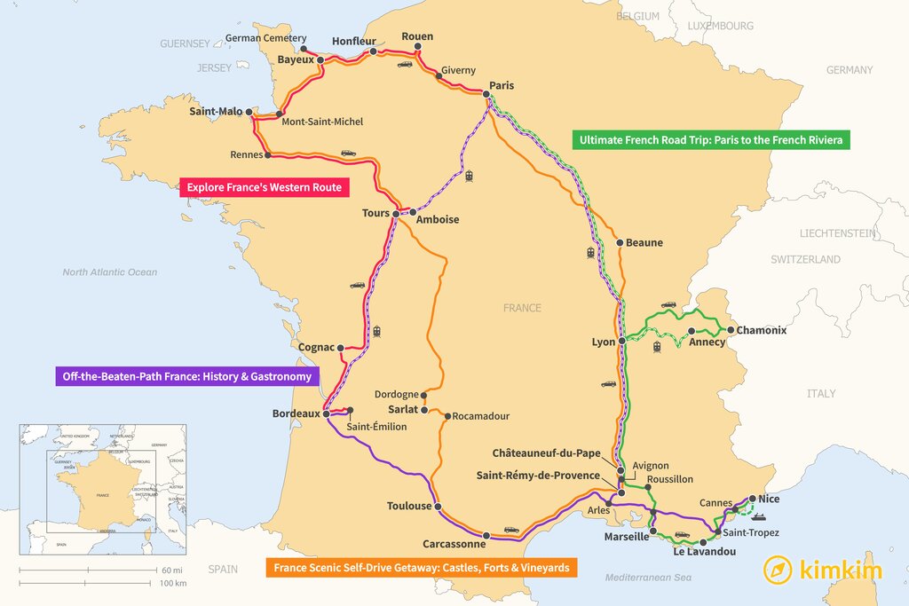 Map of 3 Weeks in France – 4 Unique Itinerary Ideas