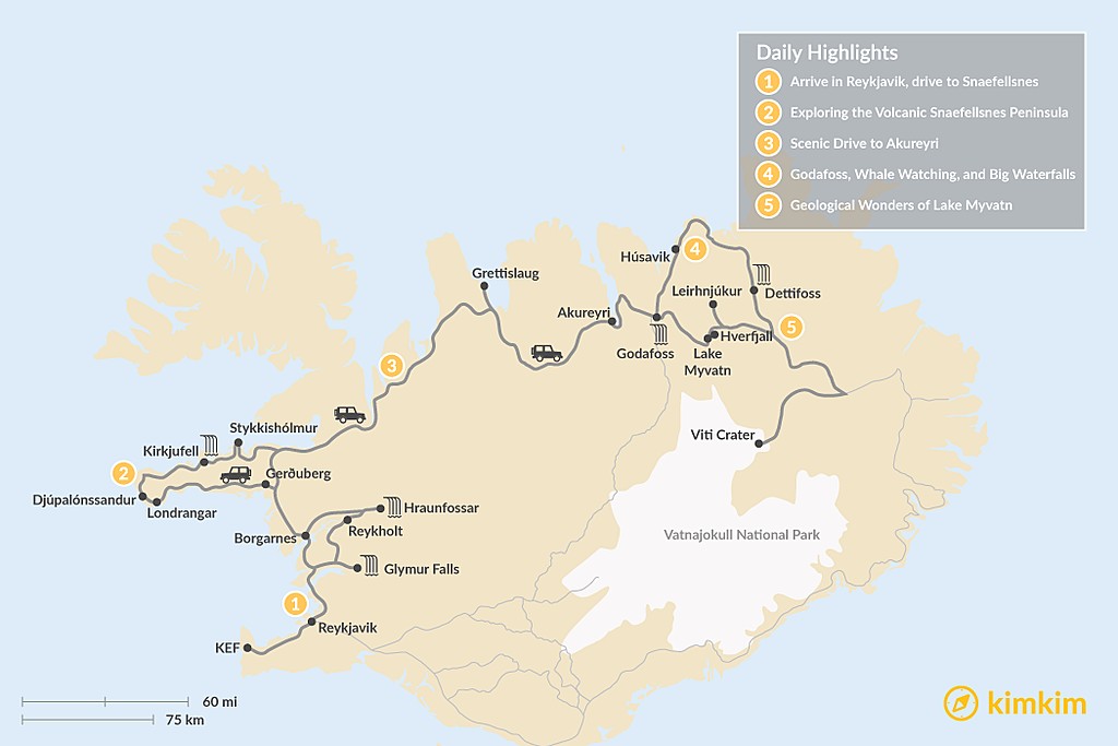Map of 5-Day Self-Driving Tour: Snaefellsnes Peninsula, Akureyri, Myvatn Area