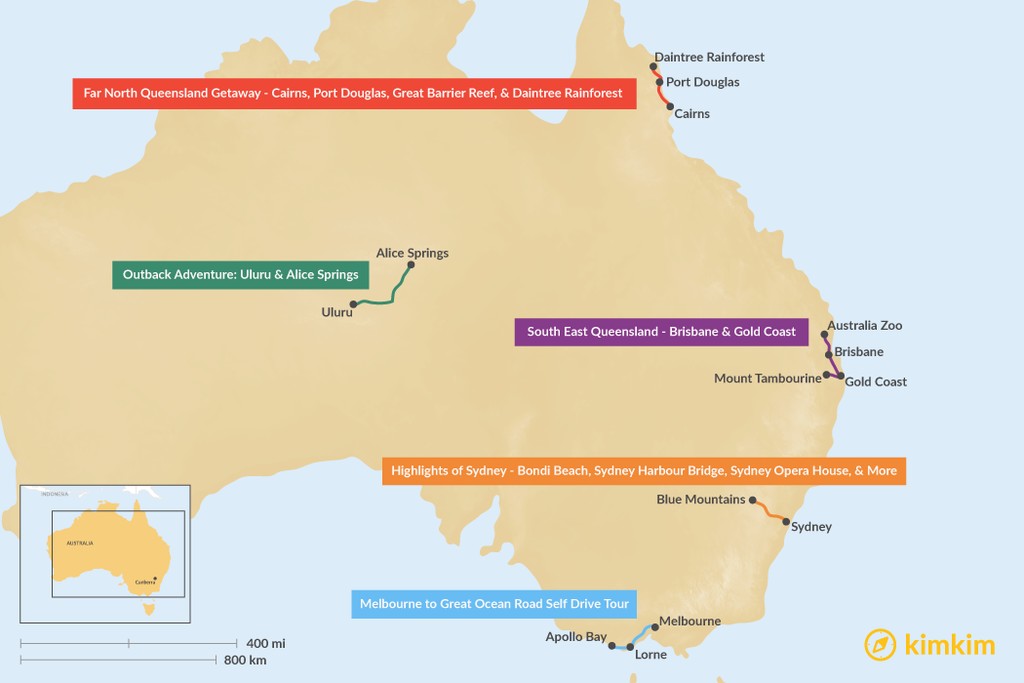 Map of 5 Days in Australia – 5 Unique Itinerary Ideas