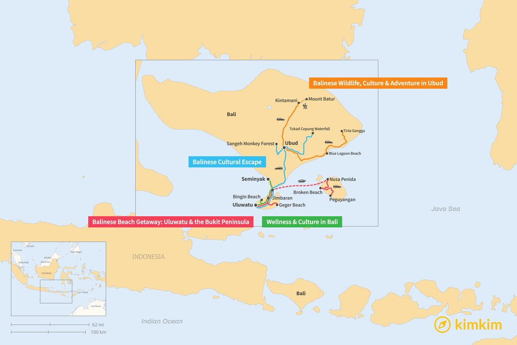 Map of 5 Days in Bali – 4 Unique Itinerary Ideas