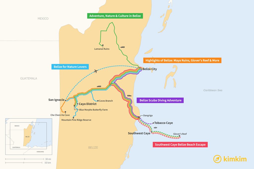 Map of 5 Days in Belize – 5 Unique Itinerary Ideas