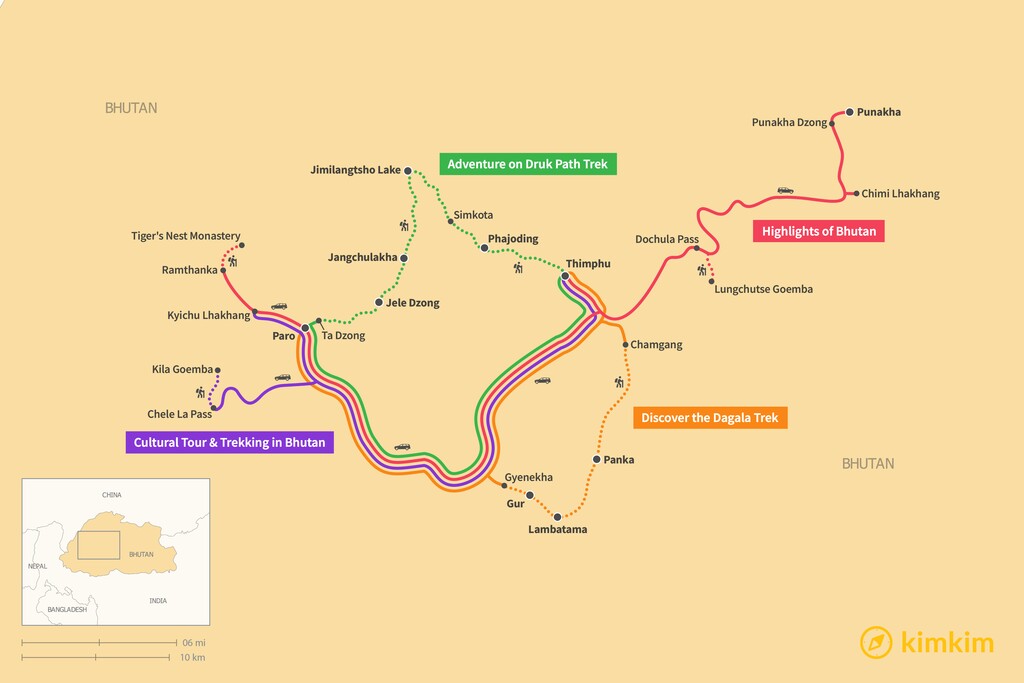 Map of 5 Days in Bhutan – 4 Unique Itinerary Ideas