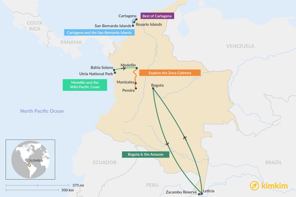 Map of 5 Days in Colombia – 5 Unique Itinerary Ideas