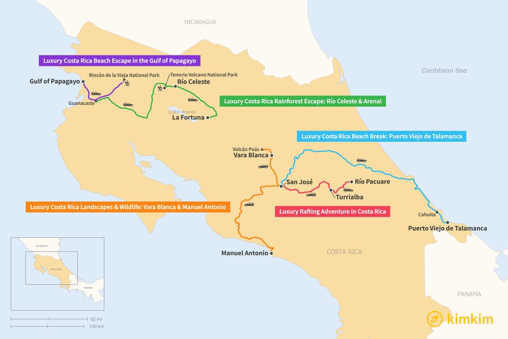 Map of 5 Days in Costa Rica – 5 Luxury Itinerary Ideas
