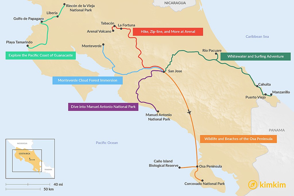 Map of 5 Days in Costa Rica – 6 Unique Itineraries