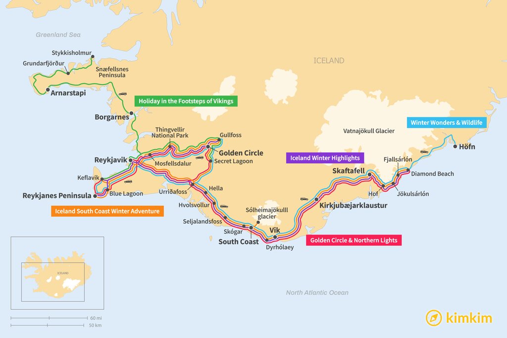 Map of 5 Days in Iceland – 5 Winter Itinerary Ideas