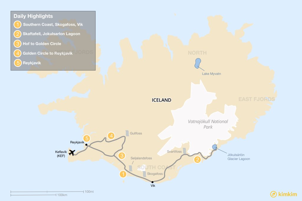 Map of 5 Days in Iceland – 7 Unique Road Trip Itinerary Ideas