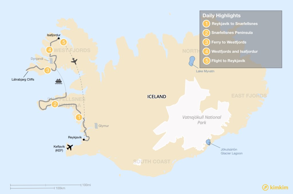 Option #5: Snaefellsnes, Westfjords, fly back