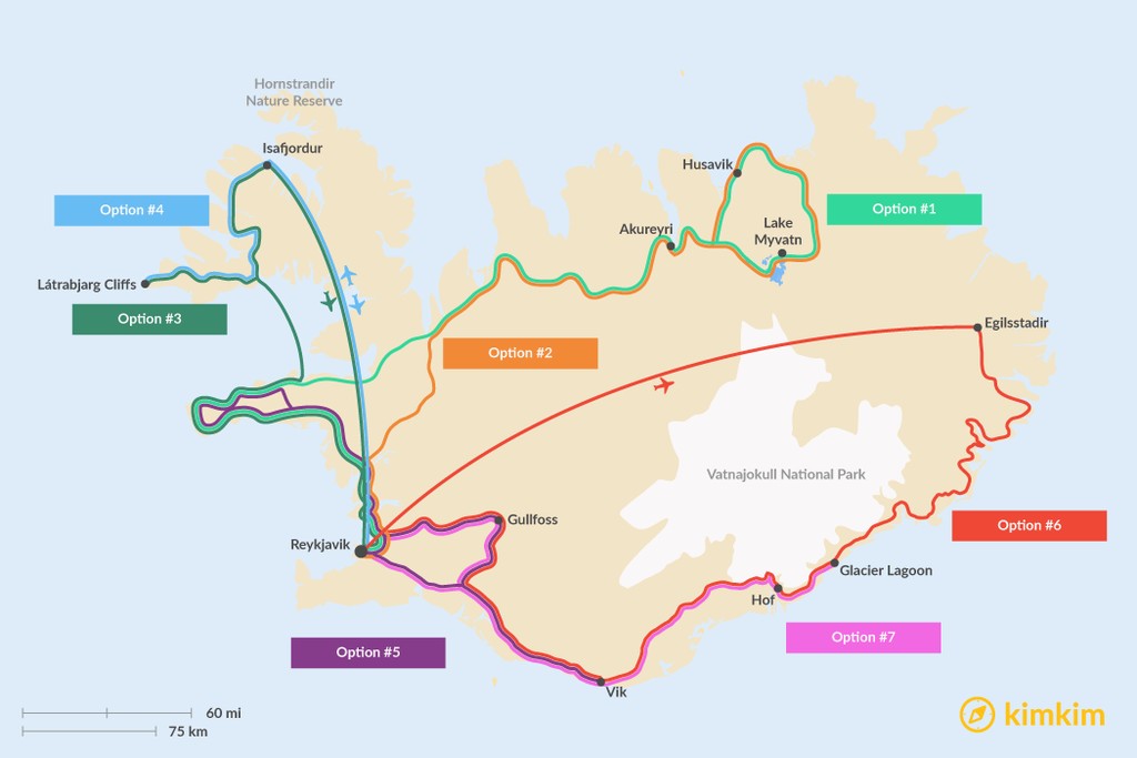 - Use a return flight to one of Iceland’s remote airports to maximize time in a region away from the crowds while minimizing driving.